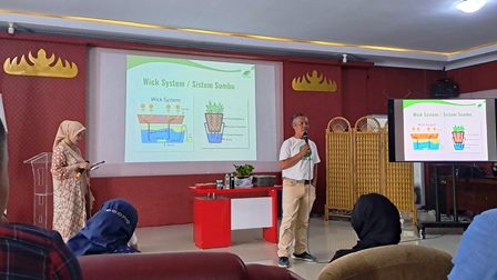 Acara dilanjutkan dengan pemaparan materi kedua dari Wahidin dengan topik materi “Green Your Own Space: Urban Horticulture for Sustainable Communities and Wellbeing”.