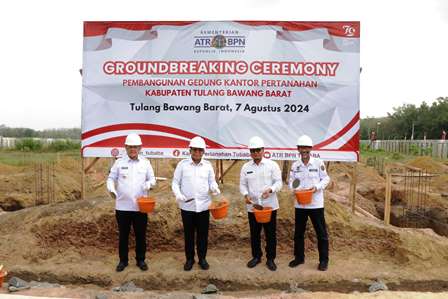 ALTUMNEWS.Com, TULANG BAWANG BARAT — Penjabat Gubernur Lampung Samsudin melakukan Peletakan Batu Pertama Pembangunan Gedung Kantor Pertanahan Kabupaten Tulang Bawang Barat, Rabu (07/08/2024).
