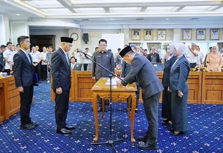 Prosesi pelantikan berlangsung di Ruang Rapat Utama Kantor Gubernur Lampung, Rabu (16/7/2025).