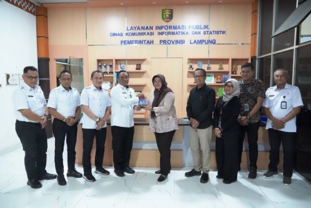 ALTUMNEWS.Com, BANDAR LAMPUNG —- Kepala Dinas Kominfotik Provinsi Lampung, Ganjar Jationo, menerima kunjungan kerja Kepala Dinas Kominfo Jawa Timur, Sherlita Ratna Dewi beserta jajarannya, di Ruang Command Center Lt. II Kantor Dinas Kominfotik Provinsi Lampung, Rabu (6/8/2025).