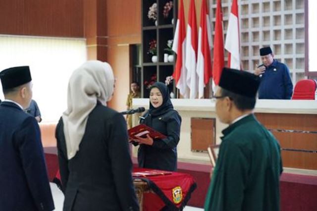 ALTUMNEWS.Com, BANDAR LAMPUNG -— Pemerintah Kota Bandar Lampung kembali melakukan penyegaran jajaran pejabat tinggi pratama. Wali Kota Eva Dwiana secara resmi melantik dan mengambil sumpah jabatan tujuh pejabat definitif dalam upacara pelantikan yang digelar di Lantai IV Gedung Semergou, Senin (6/10/2025).