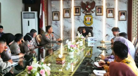 ALTUMNEWS.Com, BANDARLAMPUNG — Wali Kota Bandarlampung Eva Dwiana menerima audiensi Direktorat Pembinaan Masyarakat (Dirbinmas) Kepolisian Daerah Lampung di ruang rapat wali kota, Jumat (27/02/2026). Pertemuan tersebut membahas upaya peningkatan keamanan dan ketertiban masyarakat di wilayah Bandar Lampung.