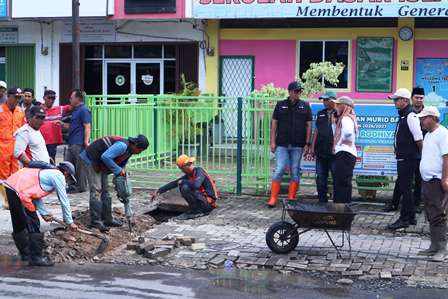 Tim gabungan yang terdiri dari BPBD, DLH, Satpol PP, Dinas PU, serta aparat kecamatan dan kelurahan turun langsung ke lokasi. Mereka terus membersihkan saluran dari sampah meski cuaca sangat panas.